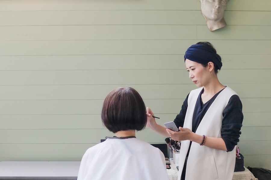 カウンセリングをしたうえで、なりたい自分・理想の自分を体感してもらいます。当サロンでは先ずは自分のメイク道具を使いこなす事から始めます。